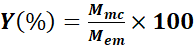 Con respecto al rendimiento (Y%), este se define como la relación entre el peso de las microcápsulas obtenidas y la cantidad de emulsión utilizada en el proceso de encapsulación. El rendimiento del proceso de microencapsulación se calculó utilizando la siguiente ecuación descrita por Benavides et al. (2016):