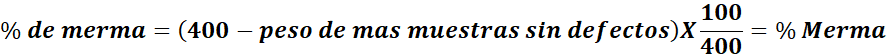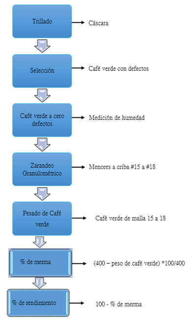 f) Porcentaje de merma. Se utilizó café verde de la malla #15 a #18 y para obtener el porcentaje de merma.