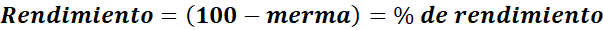 g) Porcentaje de rendimiento. El rendimiento está basado en el índice o porcentaje de merma de una materia a otra.
